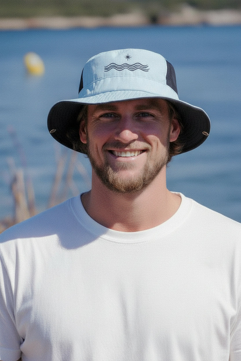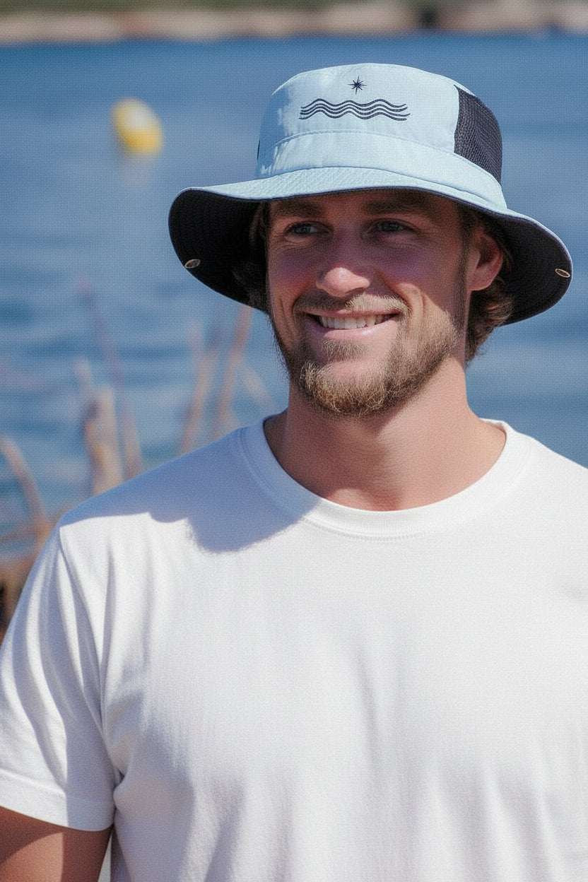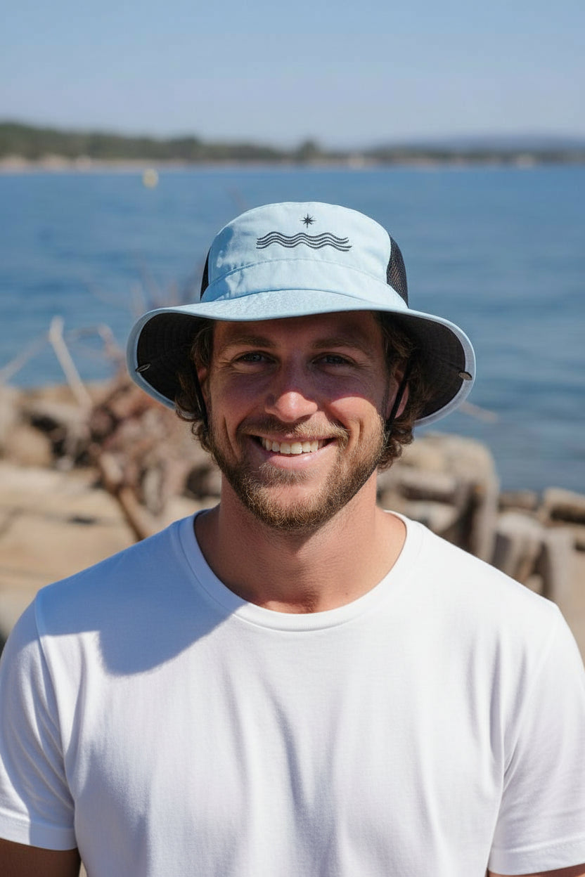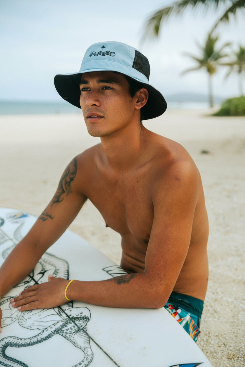 By reducing distractions such as sun reflections and unfortunate wind conditions, our surf hats foster increased focus, enabling you to fully engage with the surfing experience and the ocean's rhythm.