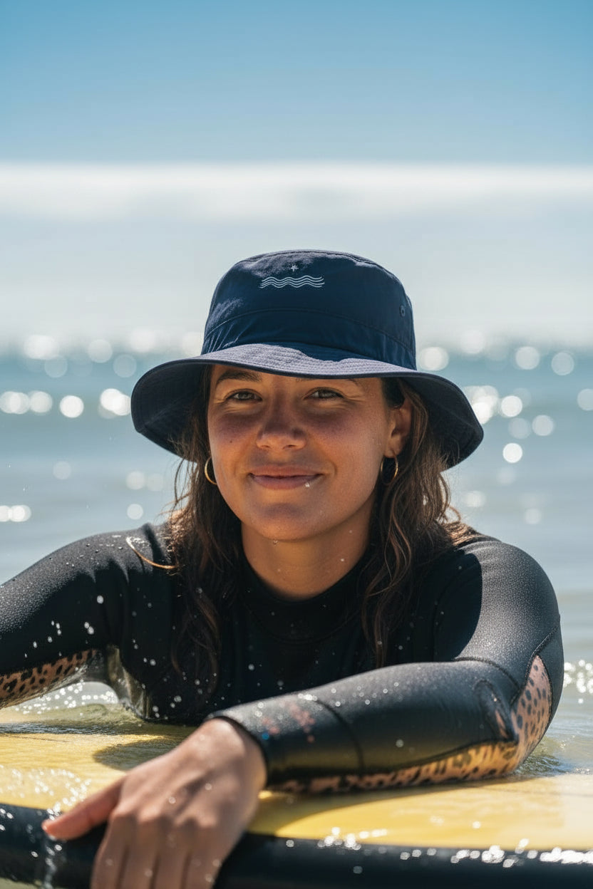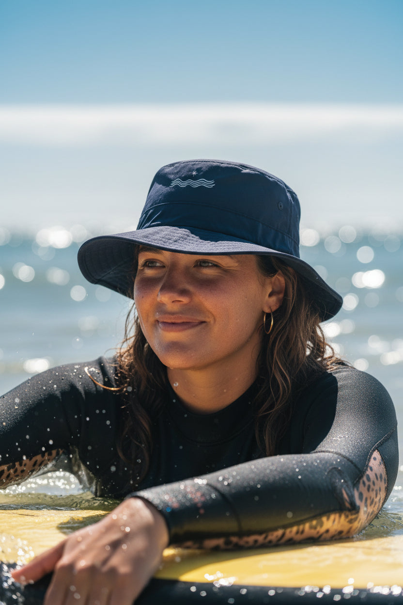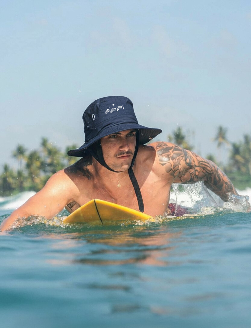 By reducing distractions such as sun reflections and unfortunate wind conditions, our surf hats foster increased focus, enabling you to fully engage with the surfing experience and the ocean's rhythm.